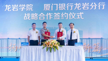 儀式上,廈門銀行龍巖分行與龍巖學院簽署戰(zhàn)略合作協(xié)議。龍巖學院經(jīng)濟與管理學院副書記、院長黃可權,廈門銀行龍巖分行黨委書記、負責人余勇分別代表雙方簽約。