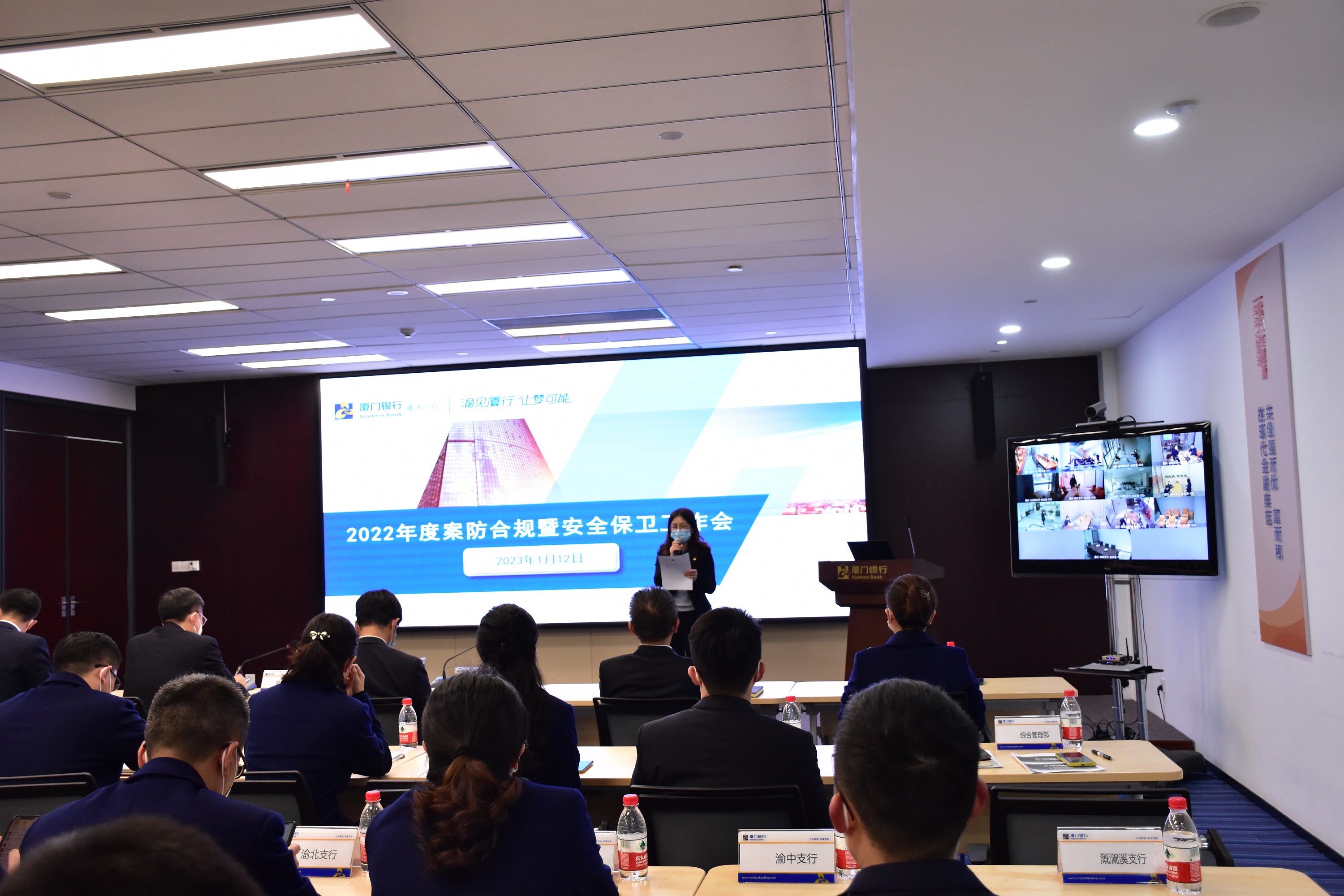 2022年12月18日,重慶分行召開2022年度工作會,對全年經(jīng)營情況進行總結回顧,并對分行下階段經(jīng)營管理重點工作進行了安排部署。在此基礎上,2023年1月12日,重慶分行召開2022年度案防合規(guī)暨安保工作會議,對全年案件風險防控、合規(guī)經(jīng)營、安全保衛(wèi)等工作進行總結,重點就授信風險管理、合規(guī)“網(wǎng)格化”建設、清廉金融文化、消費者權益保護等下階段工作措施進行了宣導,要求全力以赴完成監(jiān)管指標,堅決守住合規(guī)經(jīng)營的底線。