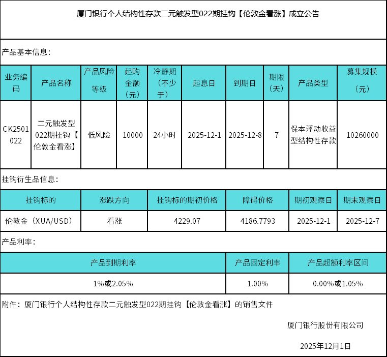 廈門銀行個(gè)人結(jié)構(gòu)性存款二元觸發(fā)型022期掛鉤【倫敦金看漲】成立公告 日期:2025-12-01 16:03:46 廈門銀行個(gè)人結(jié)構(gòu)性存款二元觸發(fā)型022掛鉤【倫敦金看漲】銷售文件.zip 上一篇 返回 下一篇